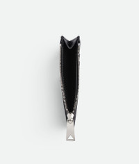 Zipped card case in Intrecciato calf leather. Product Details - Intrecciato calfskin leather card case - Three card slots, one additional pocket, one zipped coin purse with gusset - Lining: Calfskin - Color: Black - Hardware: Silver finish - Made in: Italy - Product code: 853518VCPQ38803 Material - Material: Calfskin Size & Fit - Height: 8.2 cm (3.2") - Width: 12 cm (4.7") - Depth: 0.5 cm (0.2")