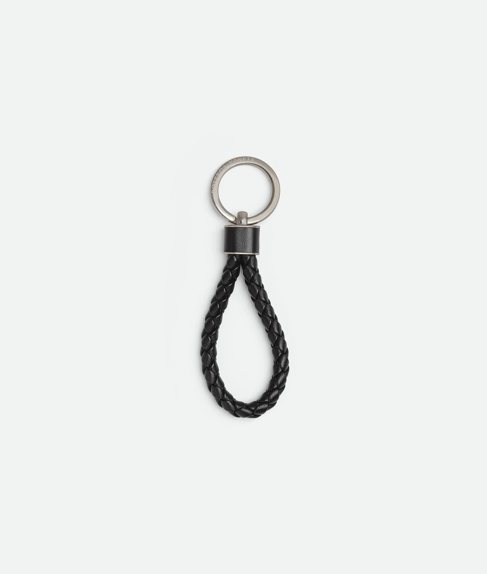 Intreccio leather key ring. Product Details - Intreccio leather key ring - Material: Lambskin - Color: Black - Hardware: Silver finish - Height: 13 cm I 5.1" - Width: 3.5 cm I 1.3" - Depth: 0.5 cm I 0.2" - Made in: Italy - Product code: 709727VMAY18803