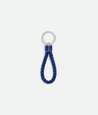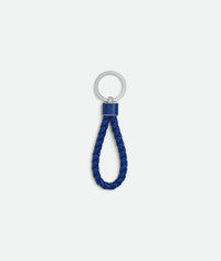 Key ring in Intreccio coaxial nappa leather. Product Details - Intreccio coaxial nappa leather key ring - Single metal hook - Lining: Unlined - Color: Blue Royal - Hardware: Silver finish - Made in: Italy - Product code: 709727VMAY14298 Material - Material: Lambskin Size & Fit - Height: 13 cm (5.1") - Width: 3.5 cm (1.4") - Depth: 0.5 cm (0.2")