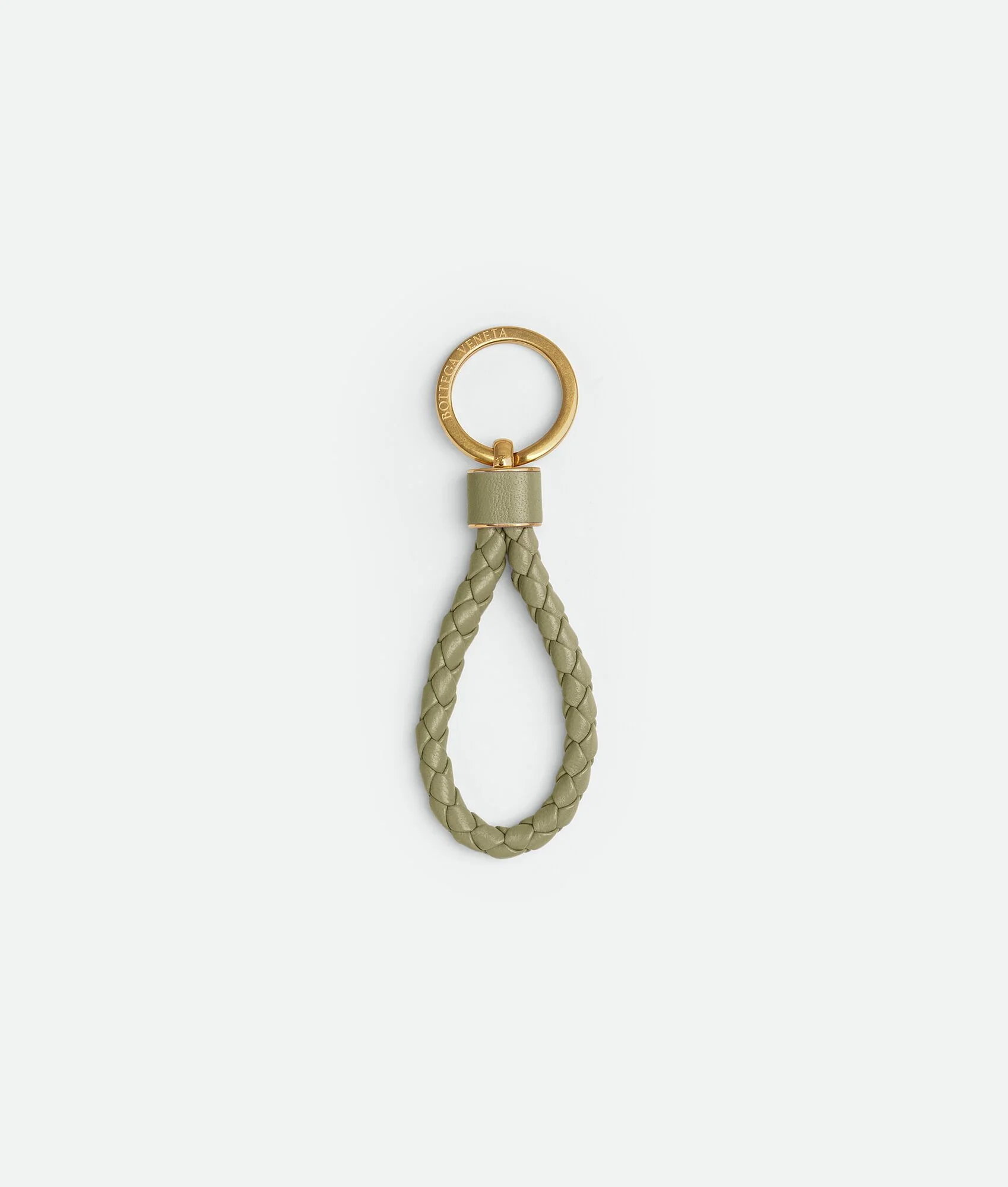 • Intrecciato leather key ring Material: 100% Lambskin • Color: Travertine • Hardware: Gold finish • Height: 13.5 cm I 5.3" • Width: 3.5 cm I 1.3" • Depth: 0.5 cm I 0.2" Made in: Italy