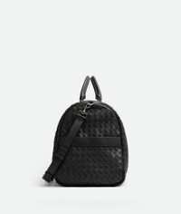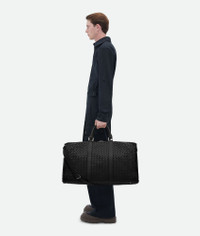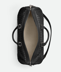 Large intrecciato leather duffle bag with detachable strap. Product Details - Large intrecciato leather duffle bag with detachable strap - One exterior side zipped pocket - One detachable interior zipped pocket - Zip closure - Material: calfskin - Lining: Bonded suede - Color: Black - Hardware: Silver finish - Height: 34 cm | 13.4" - Width: 62.5 cm | 24.6" - Depth: 26.5 cm | 10.4" - Handle drop: 15 cm | 5.9" - Strap drop: 55 cm | 21.6" - Made in: Italy - Product code: 781069V2HL18803