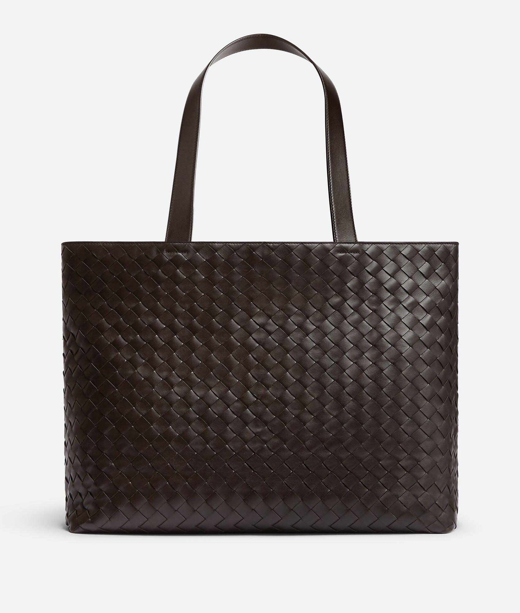 Zipped tote bag in Intrecciato leather. Product Details - Large Intrecciato leather zipped tote bag - Single exterior concealed pocket with magnet closure - One interior zipped pocket, one interior flat open pocket, one metal hook on leather strap - Zip closure - Material: Calfskin - Lining: Canvas - Color: Fondant - Hardware: Silver finish - Height: 35 cm | 13.8" - Width: 44 cm | 17.3" - Depth: 17 cm | 6.7" - Handle drop: 27 cm | 10.6" - Made in: Italy - Product code: 786666V2HL12145