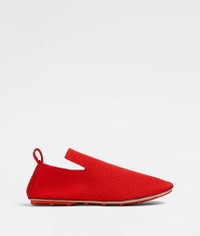 • Tech knit slippers Material: 50% WOOL, 50% Polyamide • Unlined • Color: Bright red • Rubber-injected leather outsole • Fits small, take one size larger Made in: italy