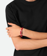Bracelet in tubular braided nappa leather with sterling silver closure. Product Details - Sterling silver and braided leather bracelet - Size S length: 20 cm | 7.9" - Size M length: 21.5 cm | 8.5" - Size L length: 23 cm | 9.1" - Color: Redstone - Made in: Italy - Product code: 829387V507C6562 Material - Material: Lambskin, sterling silver
