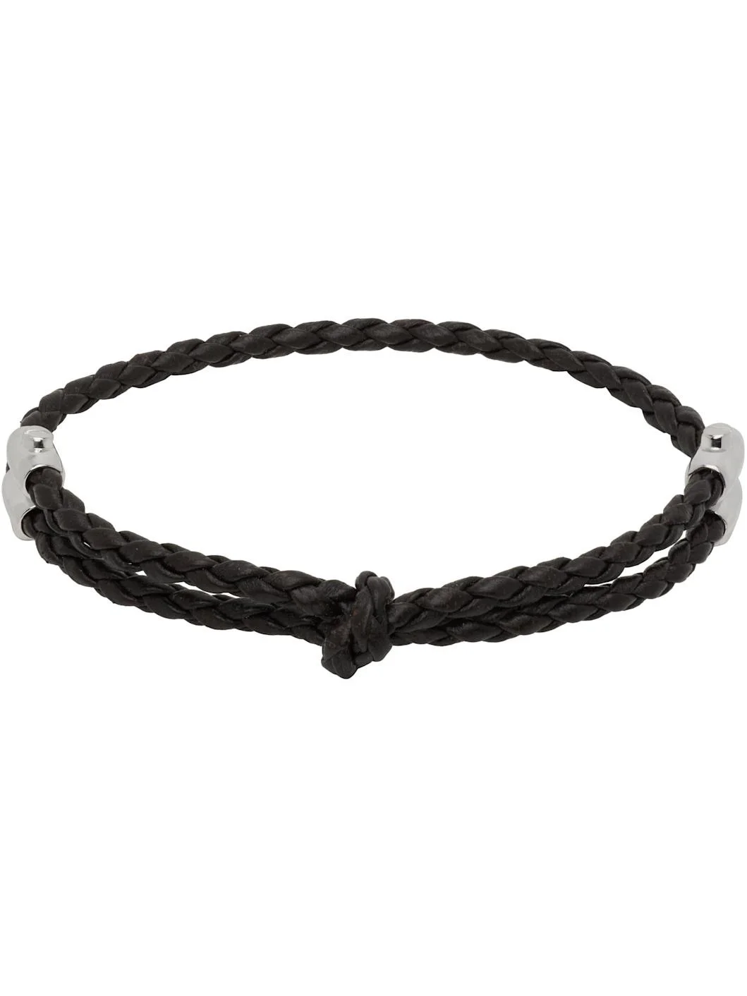 Braided buffed nappa leather bracelet in brown. · Knot at face · Pull-through fastening · Sterling silver hardware Supplier color: Fondant 925 sterling silver, leather. Made in Italy 252798M142003