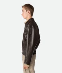 Blouson in midweight soft nappa leather with Intrecciato collar. Product Details - Midweight soft nappa leather blouson - Intrecciato leather collar - Zipper closure - Fully lined in check - Regular fit - Color: Fondant - Made in: Italy - Product code: 829954V5BX02113 Material - Material: 100% lambskin