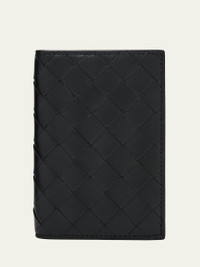Bottega Veneta passport case in intrecciato napa leather Bifold flap construction Interior, one slip pocket, five card slots Approx. 5.2"H x 3.7"W Made in Italy