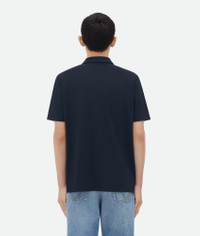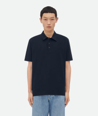 Polo in light cotton piquet. Product details • Light cotton piquet polo • Button closure • "BV" embroidery detail • Relaxed fit Material: 57% Cotton, 43% Lyocell • Color: Dark Night Made in: Italy Size & fit • Model is 188 cm | 6'2" and is wearing a Bottega Veneta size S