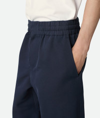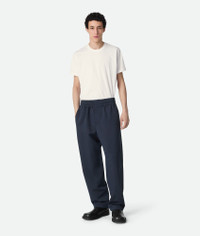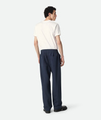 Elasticated trousers with straight leg in silk and cotton twill. Product Details - Silk and cotton twill pants - Straight leg - Elasticated waistband - Lined - Color: Abyss - Made in: Italy - Product code: 836964V5PT04140 Material - Material: 57% cotton, 43% silk Size & Fit - Model is 186 cm|6'1" and is wearing a Bottega Veneta size 46