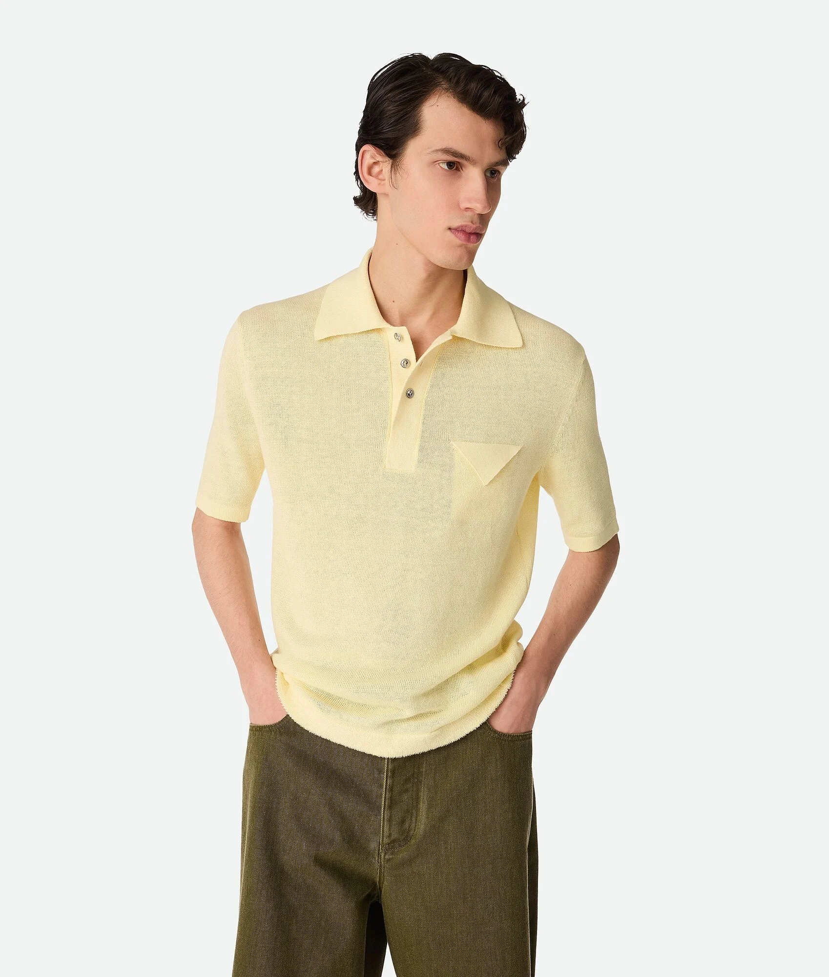 Polo in lightweight linen. Product Details - Lightweight linen polo - Triangle pocket detail - Regular fit - Material: 100% Linen - Color: Barley - Made in: Italy - Product code: 740733V2X007361 Size & Fit - Model is 186 cm | 6'1" and is wearing a Bottega Veneta size S