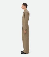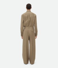 Pleated trousers in light tailored wool. Product Details - Light tailored wool pleated trousers - Zip, button and hook closure - Triangle detail at back pocket - Unlined - Straight leg - Material: 100% wool - Color: Sage/Camel Melange - Made in: Italy - Product code: 798071V3ZE03021 Size & Fit - Model is 188 cm|6'2" and is wearing a Bottega Veneta size 46
