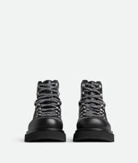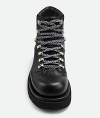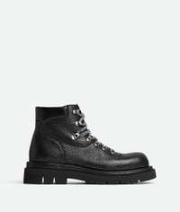 Product Details - Grainy leather lace-up ankle trunk - Leather collar - Lining: Calfskin - Color: Black - Hardware: Silver finish - Micro rubber outsole - Made in: Italy - Product code: 855196V5U321000 Material - Material: Calfskin, lambskin Size & Fit - Flatform: 5.5 cm (2.2")