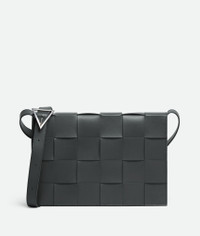 Cross-body bag realised with Intreccio craftsmanship in soft calfskin leather. Product Details - Maxi Intreccio leather cross-body bag - Single interior zippered pocket - Magnetic closure - Material: Calfskin - Lining: Calfskin bonded Intreccio - Color: Ardoise - Hardware: Silver finish - Height: 24.7 cm | 9.7" - Width: 36.5 cm | 14.4" - Depth: 7.5 cm | 3" - Strap drop: 62 cm | 24.4" - Made in: Italy - Product code: 778320VB1K02077