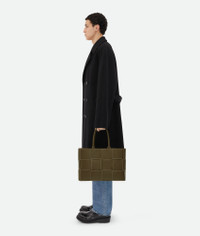 Tote bag made from leather using Intreccio craftsmanship featuring edge-stitching Product details • Medium Intreccio leather tote bag with edge-stitching detail • Single interior detachable zipped pocket Material: 100% Calfskin • Lining: Calfskin bonded Intreccio • Colour: Mud-Natural stitch • Hardware: Silver finish • Height: 27 cm | 10.6" • Width: 37 cm | 14.6" • Depth: 9 cm | 3.5" • Handle drop: 18 cm | 7.1" Made in: Italy