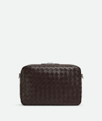 Cross-body bag in soft Intrecciato calfskin leather with detachable strap and metal Product Details - Medium Intrecciato leather cross-body bag with detachable strap and metal D-ring - One interior zippered pocket with leather trimming, one open pocket in canvas - Zipper closure - Material: calfskin - Lining: Canvas - Color: Fondant - Hardware: Silver finish - Height: 19.5 cm | 7.7" - Width: 29 cm | 11.4" - Depth: 7.5 cm | 3" - Strap drop: 55 cm | 21.7" - Made in: Italy - Product code: 755925V2HL12145