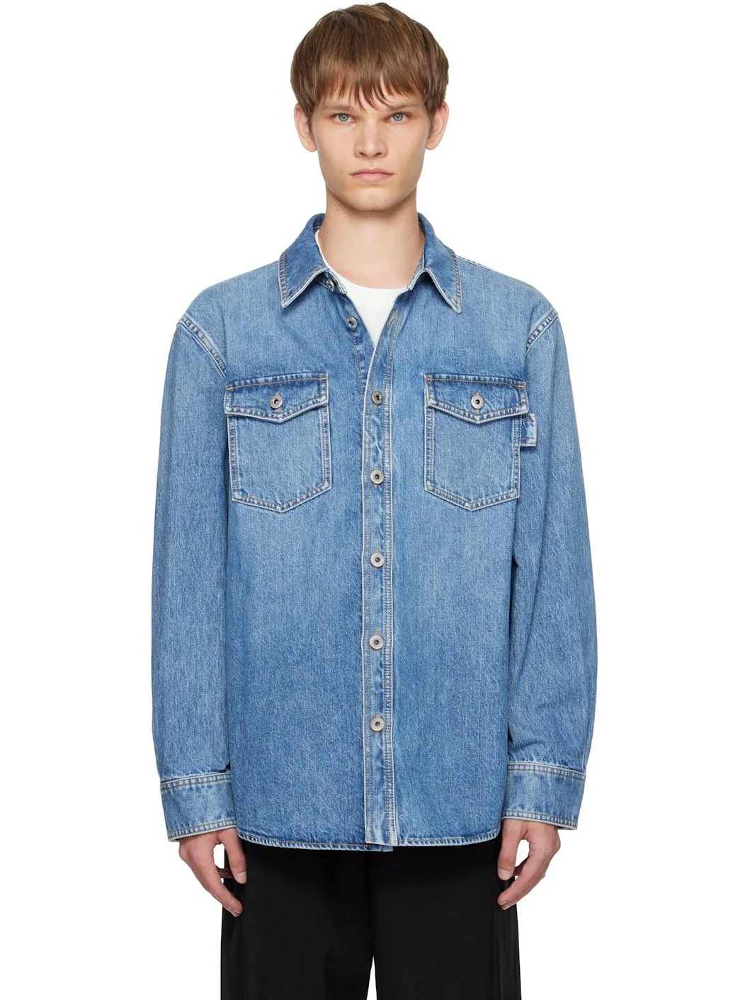 Non-stretch denim shirt. · Fading throughout · Spread collar · Button closure · Flap pockets at chest · Shirttail hem · Buttoned barrel cuffs · Contrast stitching in tan Supplier color: Blue 100% cotton. Made in Italy 252798M192008