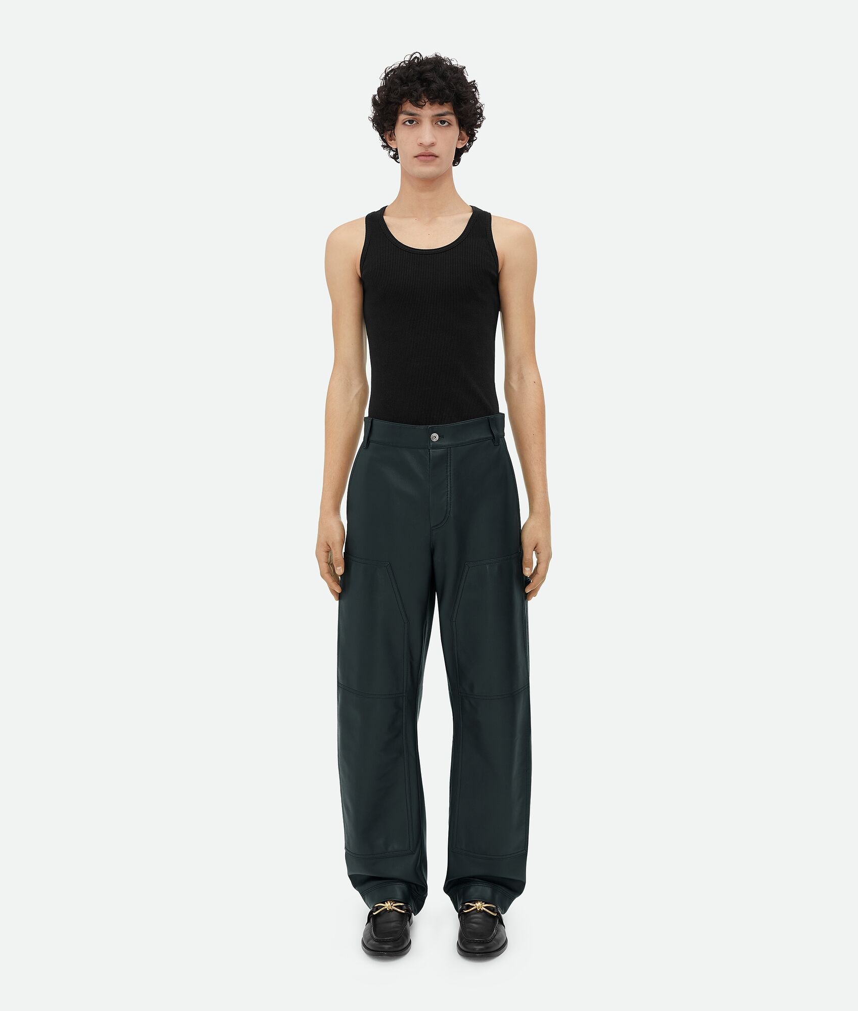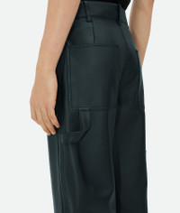 Cargo trousers in soft nappa leather. Product details • Nappa leather cargo trousers • Cargo pocket detail • Zip and button closure Material: 100% Lambskin • Color: Shadow Made in: Italy Size & fit • Model is 189 cm|6'2" and is wearing a Bottega Veneta size 46