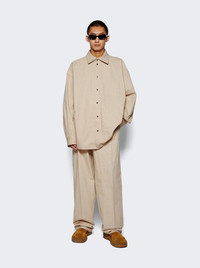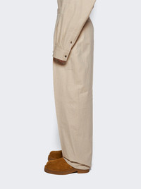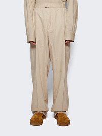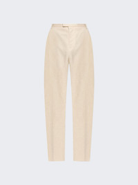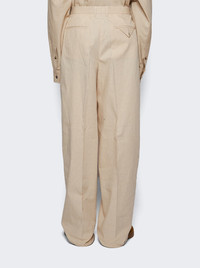 Details - High waisted trousers - Wide legs taper off at the bottom - Off-center pleats - Luxuriously textured hemp-cotton blend - Two slip pockets at the front - One buttoned pocket, one flap pocket at the back Dimensions: Model is 6'1"/185cm and is wearing a size EU52 Composition: 55% Hemp, 45% Cotton Care: Care according to label Brand Style: 804757 V4MS0 Designer/Brand: BOTTEGA VENETA
