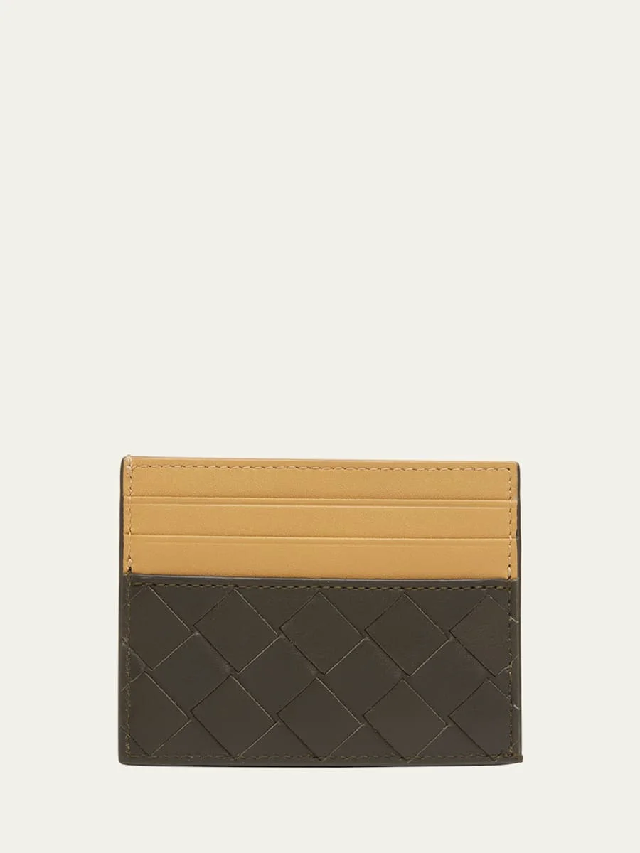 Bottega Veneta card case in bicolor Intrecciato calfskin leather Six card slots One central compartment with Lopening Approx. 3.1"H x 4.1"W Made in Italy