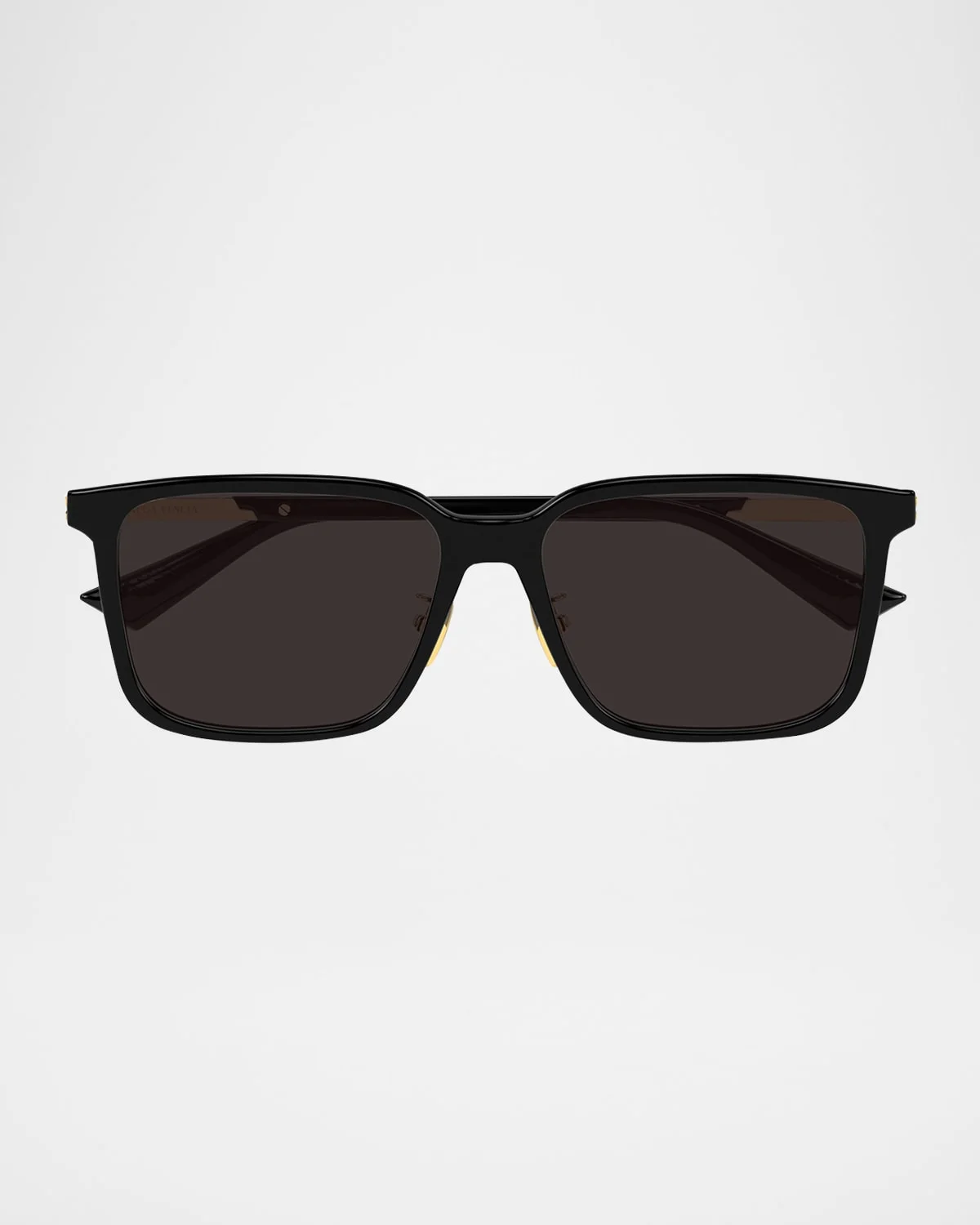 - Bottega Veneta "BV1374SK" rectangle sunglasses in recycled acetate with gold-tone metal accents - Lens/bridge/temple (in mm): - 57-16-145 - Solid-color lenses - Adjustable nose pads - Engraved logo on the temples - Acetate - 100% UVA/UVB protection - Made in Italy - Proposition 65 warning for California residents