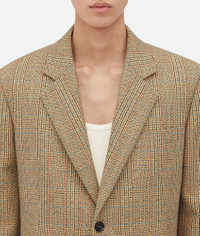 Jacket in Prince of Wales wool. Product Details - Prince of Wales wool jacket - Button closure - Fully lined - Regular fit - Material: 48% Wool, 26% Cotton, 26% Polyester - Color: Beige/Yellow/Blue - Made in: Italy - Product code: 744612V4BW01487 Size & Fit - Model is 188 cm|6'2" and is wearing a Bottega Veneta size 46
