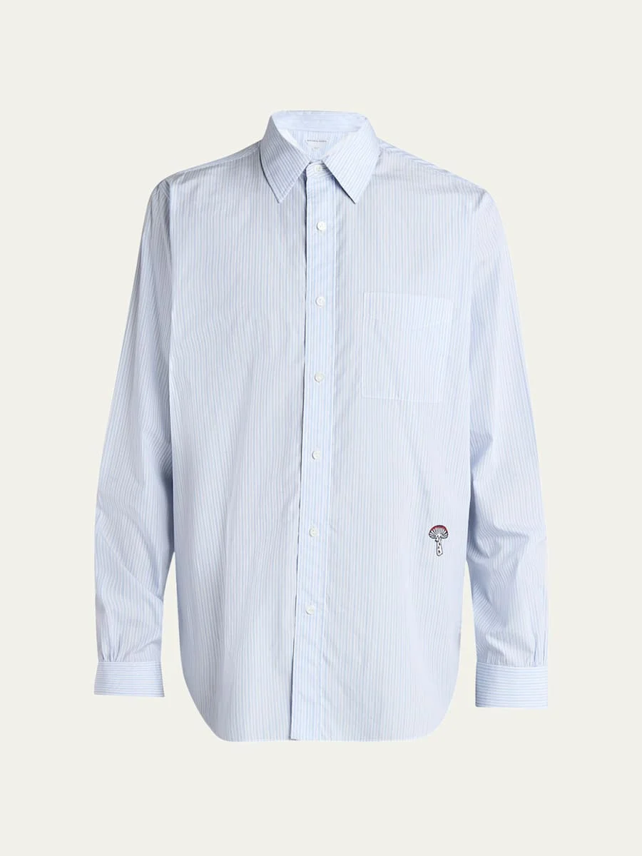 Men's Fine Stripe Poplin Shirt with Embroidered Mushroom Patch