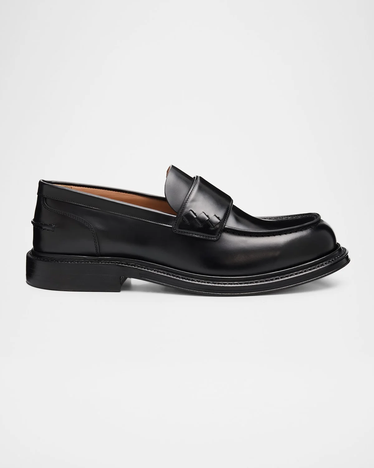 These Bottega Veneta loafers are realised in smooth calfskin with the iconic Intrecciato on the outside of the saddle strap. Stacked heel Round moc toe Leather lining Leather saddle strap with Intrecciato Rubber outsole Slipon style Made in Italy
