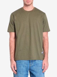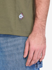 Crew neck short-sleeved t-shirt in military green cotton jersey. It features a small embroidered fish detail on the lower front and ribbed neckline. Slim fit. The model is 189cm tall and wears a size L. More Info Product Number : 39769657 Product Code : 813903V4KJ03293 The model is 189cm tall and wears a size L. Composition : 100% cotton; details: cotton, elastane, viscose, polyester Made in: Italy