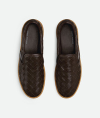 Slip-on sneaker realised with all-over Intrecciato craftsmanship in soft calfskin. Product Details - Intrecciato leather slip-on sneaker - Lining: Calf leather - Color: Fondant - Rubber outsole - Made in: Italy - Product code: 775320V3HB02113