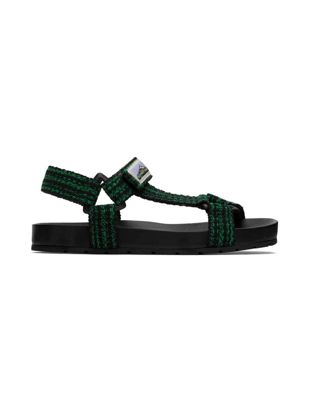Webbing sandals in black and green. · Open square toe · Logo patch at vamp · Velcro ankle strap and slingback strap · Logo embossed at molded footbed · Treaded rubber sole Supplier color: Black clover Upper: textile. Sole: rubber. Made in Italy 242798M234001