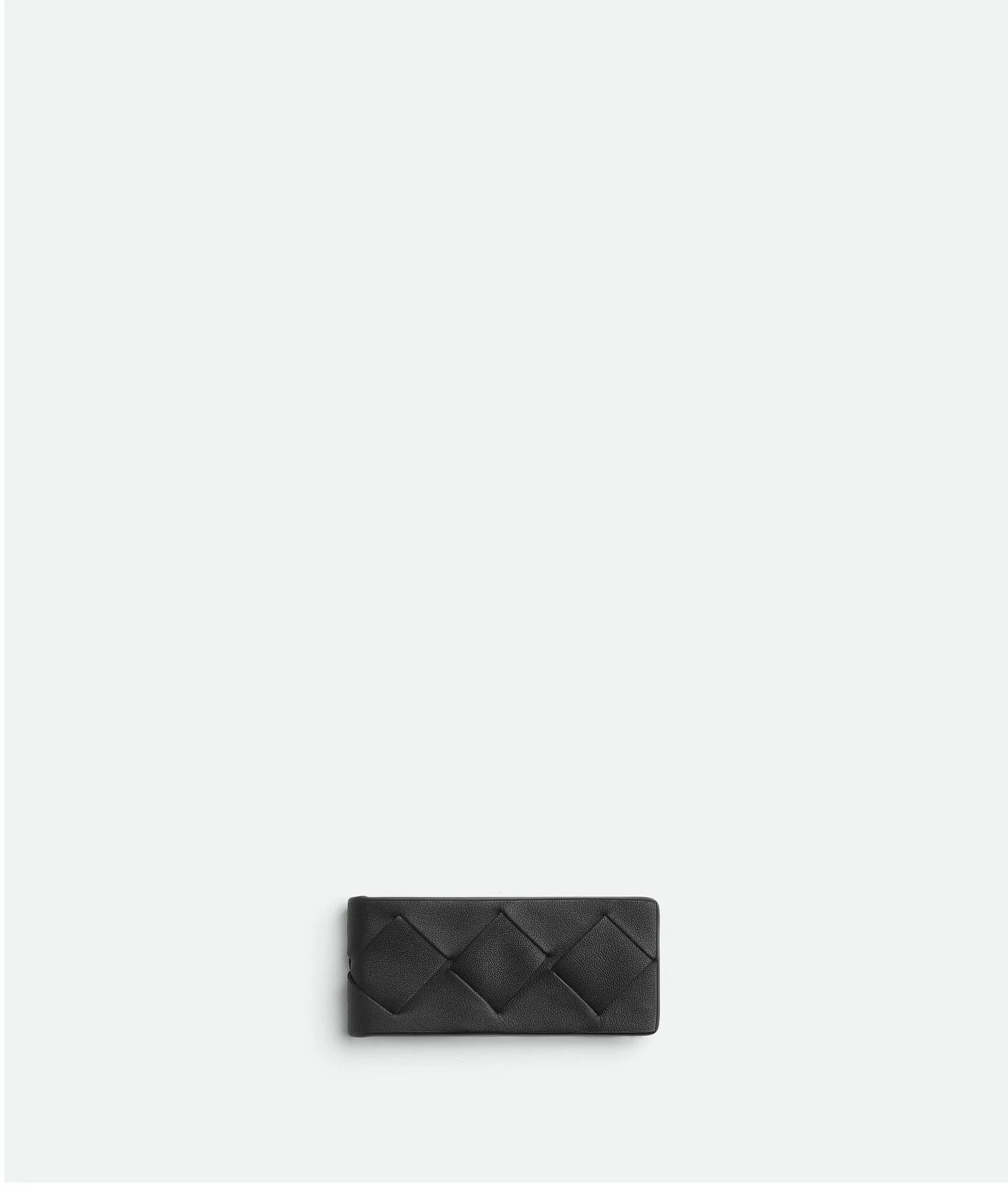 Intrecciato leather money clip. Product Details - Intrecciato leather money clip - Magnetic closure - Material: Calfskin - Color: Black - Height: 7 cm I 2.7" - Width: 3.2 cm | 1.2" - Depth: 1 cm | 0.4" - Made in: Italy - Product code: 609799VCPQ18803