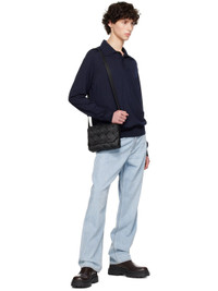 Knit wool polo. · Rib knit spread collar, hem, and cuffs · Three-button placket · Inverted seams at side seams and saddle shoulders Supplier color: Navy