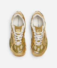 Runner sneaker in lightweight technical fabric and mesh. Product Details - Technical fabric and mesh lace-up sneaker - Material: Polyurethan, cotton, calfskin, nylon - Lining: Technical fabric - Colour: Gold/White - Rubber outsole - We recommend taking a size up - Made in: Italy - Product code: 741357V2X407043