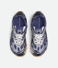 Runner sneaker in lightweight technical fabric and mesh. Product Details - Technical fabric and mesh lace-up sneaker - Material: Polyurethan, cotton, calfskin, nylon - Lining: Technical fabric - Color: Abyss/Silver - Rubber outsole - We recommend taking a size up - Made in: Italy - Product code: 741357V2X404152
