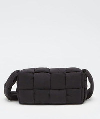 • Crossbody bag in padded Intrecciato Nylon • Tubular padded strips in an orthogonal weave • Detachable interior zipped pocket • Adjustable padded shoulder strap • Top handles • Magnetic closure • Unlined DETAILS Composition: 100% Polyamide Color: Black Hardware: Silver finish Height: 15cm / 5.9" Width: 30cm / 11.8" Depth: 7.5cm / 3" Strap drop: 58cm / 22.8" Made in Italy
