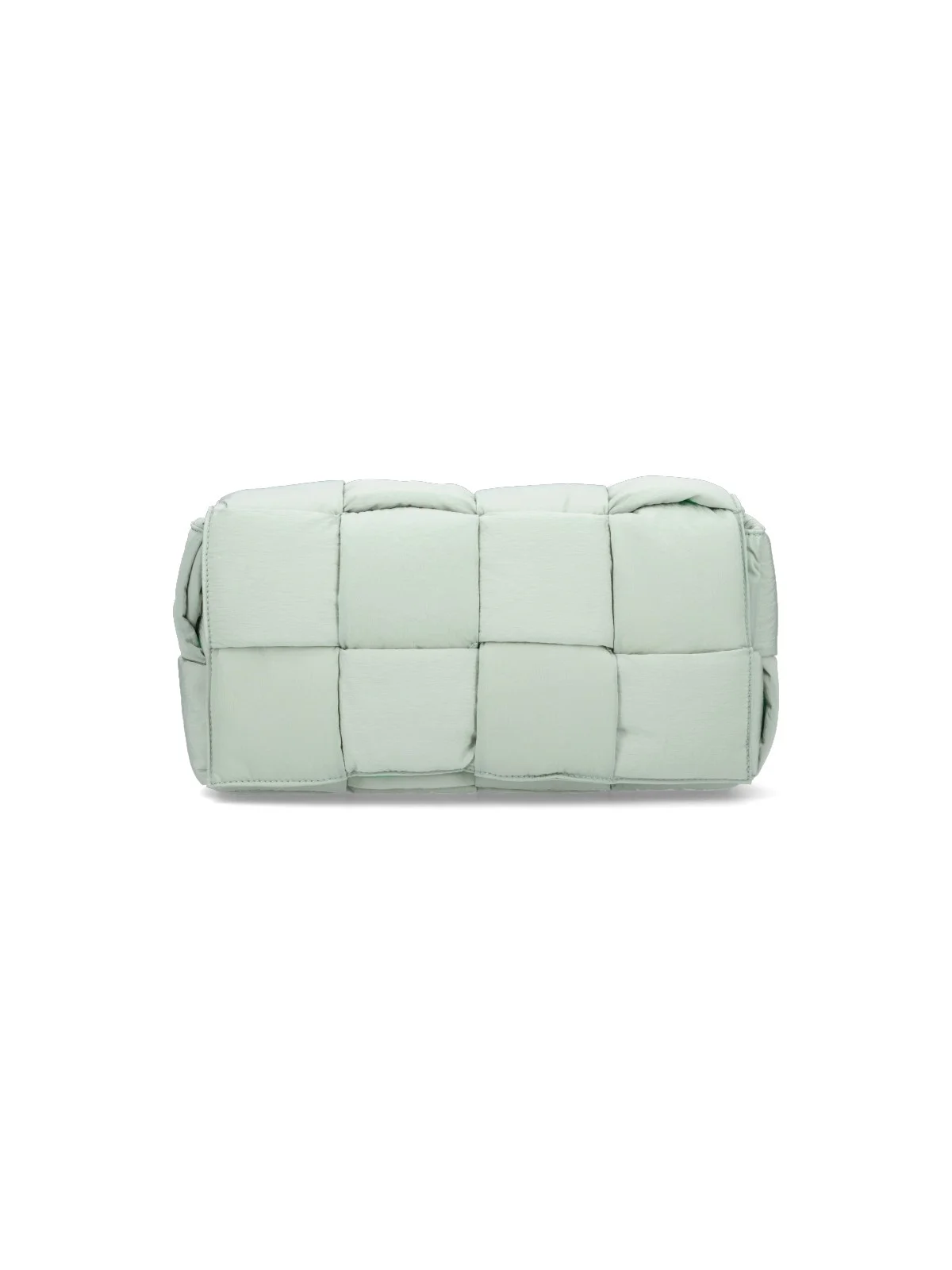 BOTTEGA VENETA 'PADDED TECH' CROSSBODY BAG IN LIGHT GREEN NYLON WITH DARK DETAILS, WOVEN PATTERN, ADJUSTABLE SHOULDER STRAP, MAGNETIC CLOSURE, REMOVABLE INNER ZIP POCKET, MAIN INNER COMPARTMENT. PRODUCT INFO PRODUCT CODE 749880 V2B013469 COMPOSITION: 100% NYLON SIZE AND FIT: H 15 X W 30 X D 7.5 CM MADE IN: ITALY - STRAP DROP: 58 CM