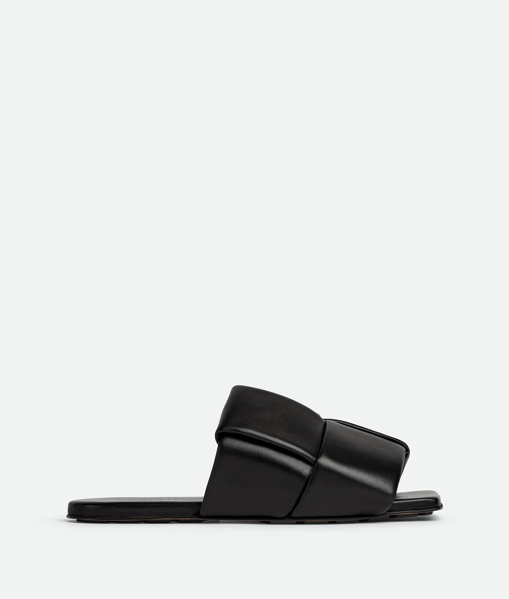 Padded Intreccio leather mules. Product details • Padded Intreccio leather mules Material: 100% Lambskin • Unlined • Color: Black • Bio-based rubber-injected and biodegradable leather outsole Made in: Italy