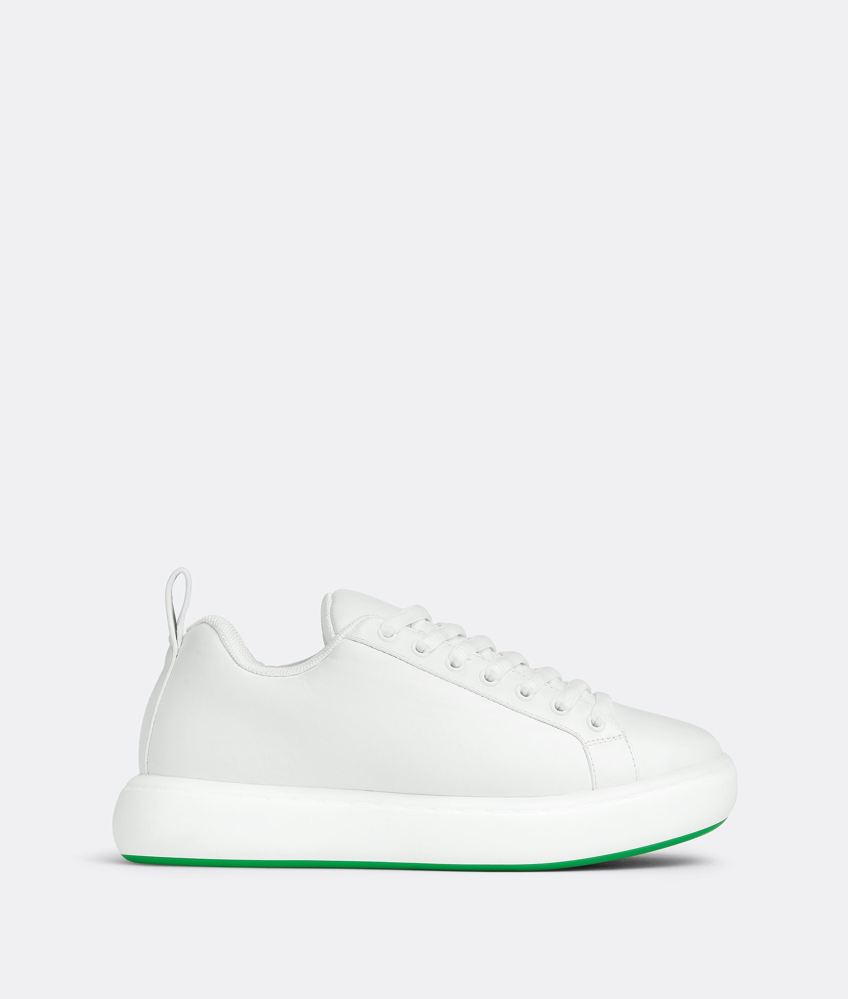 Padded leather lace-up sneakers. Product details • Padded leather lace-up sneakers Material: 100% Calfskin • Lining: Sporty mesh fabric • Color: Optic White/Parakeet • Rubber outsole • Flatform: 4 cm I 1.6" Made in: Italy