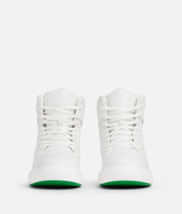 Padded leather high top lace-up sneakers. Product details • Padded leather high top lace-up sneakers • Metal-free leather Material: 100% Calfskin • Lining: Sporty mesh fabric • Color: Optic White/Parakeet • Rubber outsole • Flatform: 4 cm | 1.6" Made in: Italy