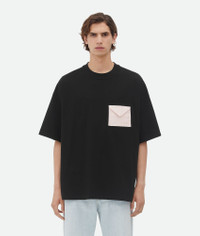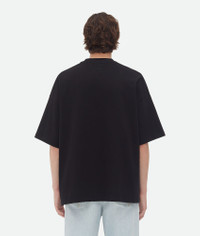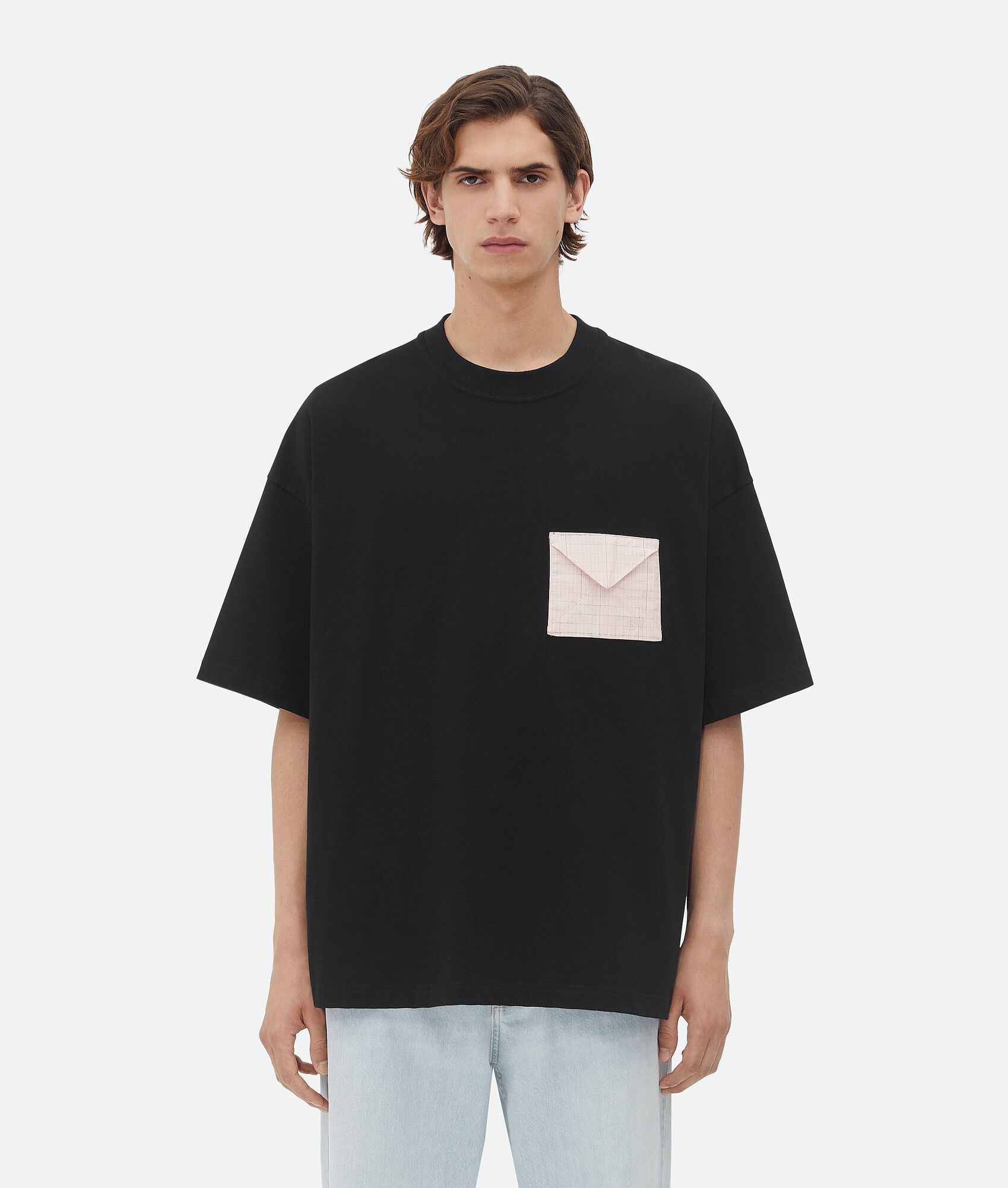 Oversized t-shirt in pima cotton jersey with notebook detail. Product Details - Pima cotton jersey T-shirt - Notebook detail - Oversized fit - Material: 100% cotton - Color: Black - Made in: Italy - Product code: 804276V4N501000 Size & Fit - Model is 190 cm|6'2" and is wearing a Bottega Veneta size 46