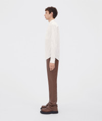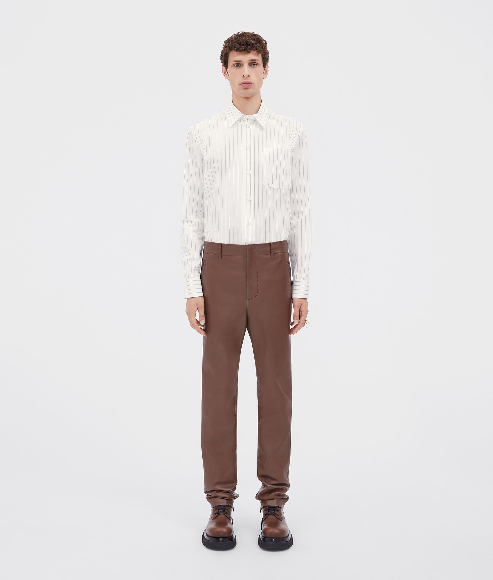 Cotton pinstripe shirt. Product details • Cotton pinstripe shirt • Button closure • Unlined • Regular fit Material: 100% Cotton • Color: White/Black Made in: Italy Size & fit • Model is 188 cm | 6'2" and is wearing a Bottega Veneta size 46