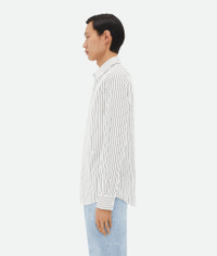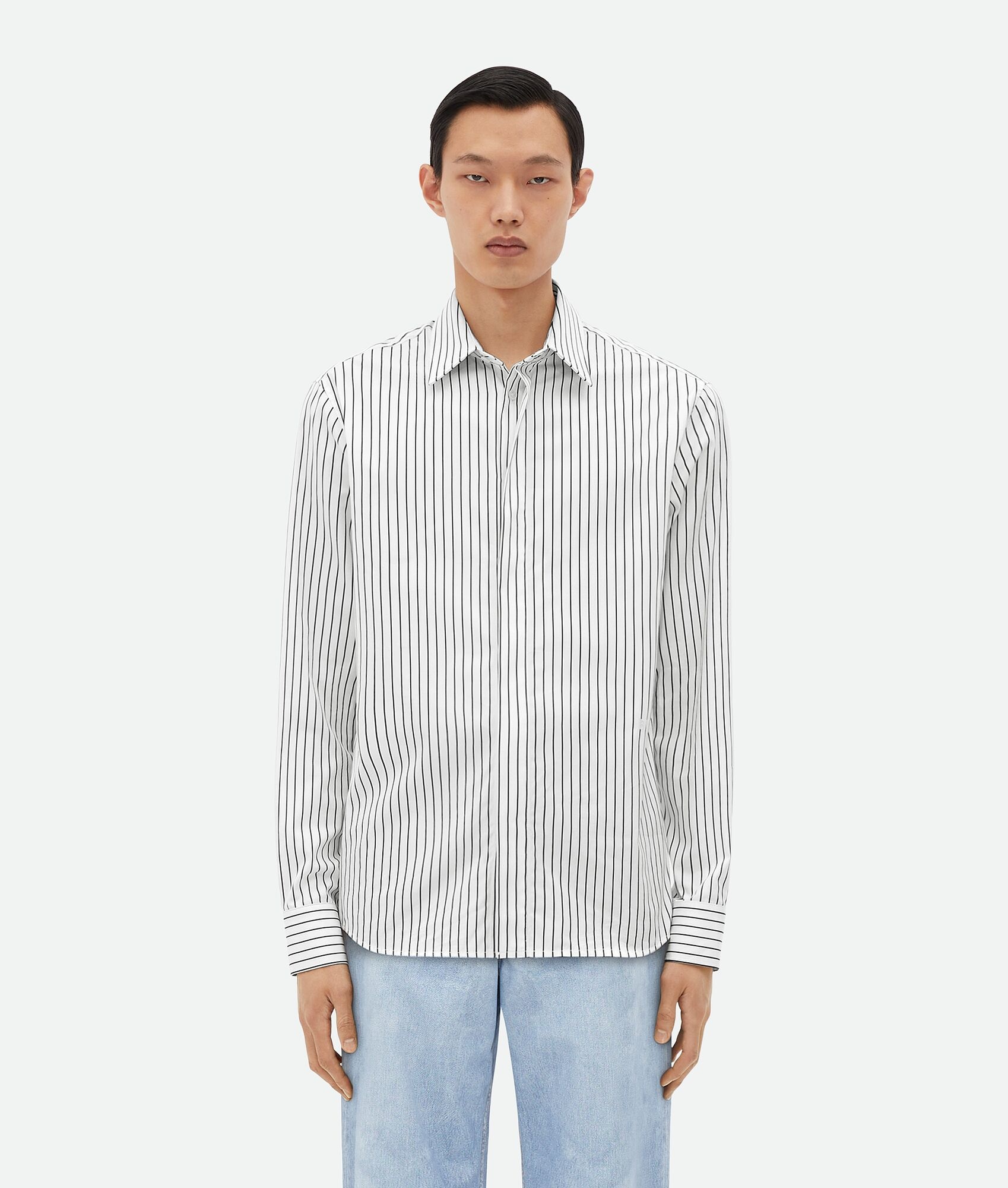 Shirt realised in classic cotton poplin with a bold black pinstripe and brand embroidery Product Details - Pinstripe poplin shirt - "BV" embroidery on the front side - Button closure - Regular fit - Material: 100% Cotton - Color: White/Black - Made in: Italy - Product code: 762914V2FD09003 Size & Fit - Model is 188 cm|6'2" and is wearing a Bottega Veneta size 46