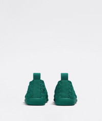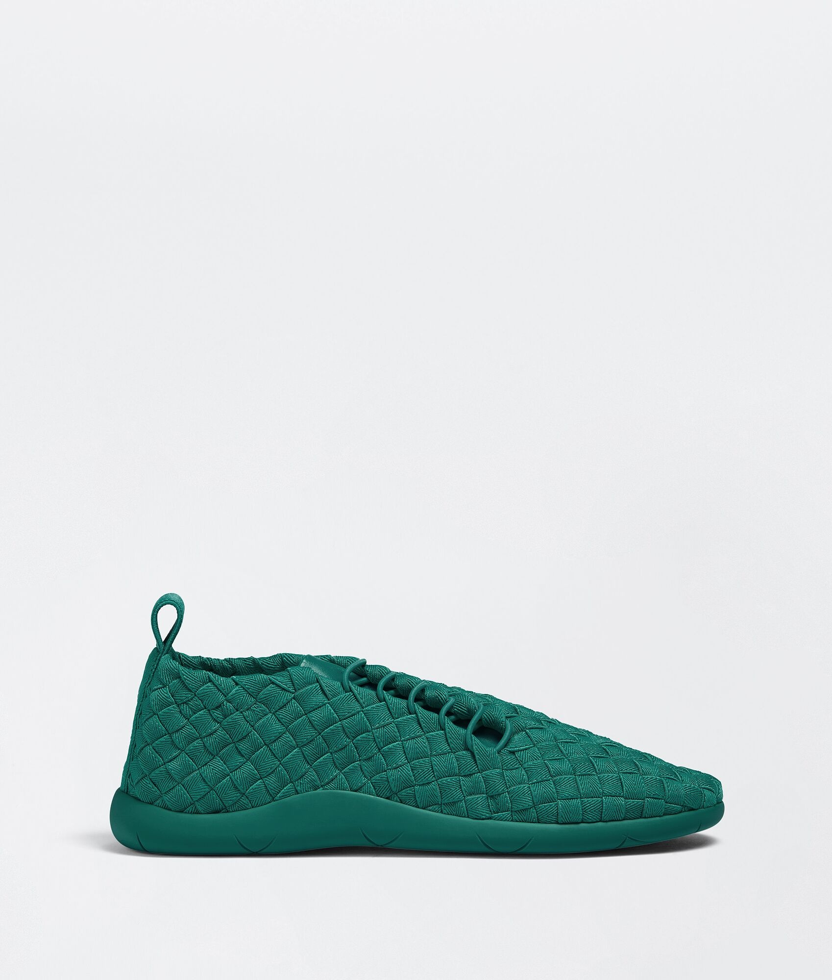 • Intrecciato elastic lace-up sneakers Material: 65% Metallic Lurex, 35% Rubber • Unlined • Color: Acid Turquoise • Rubber outsole Made in: Italy
