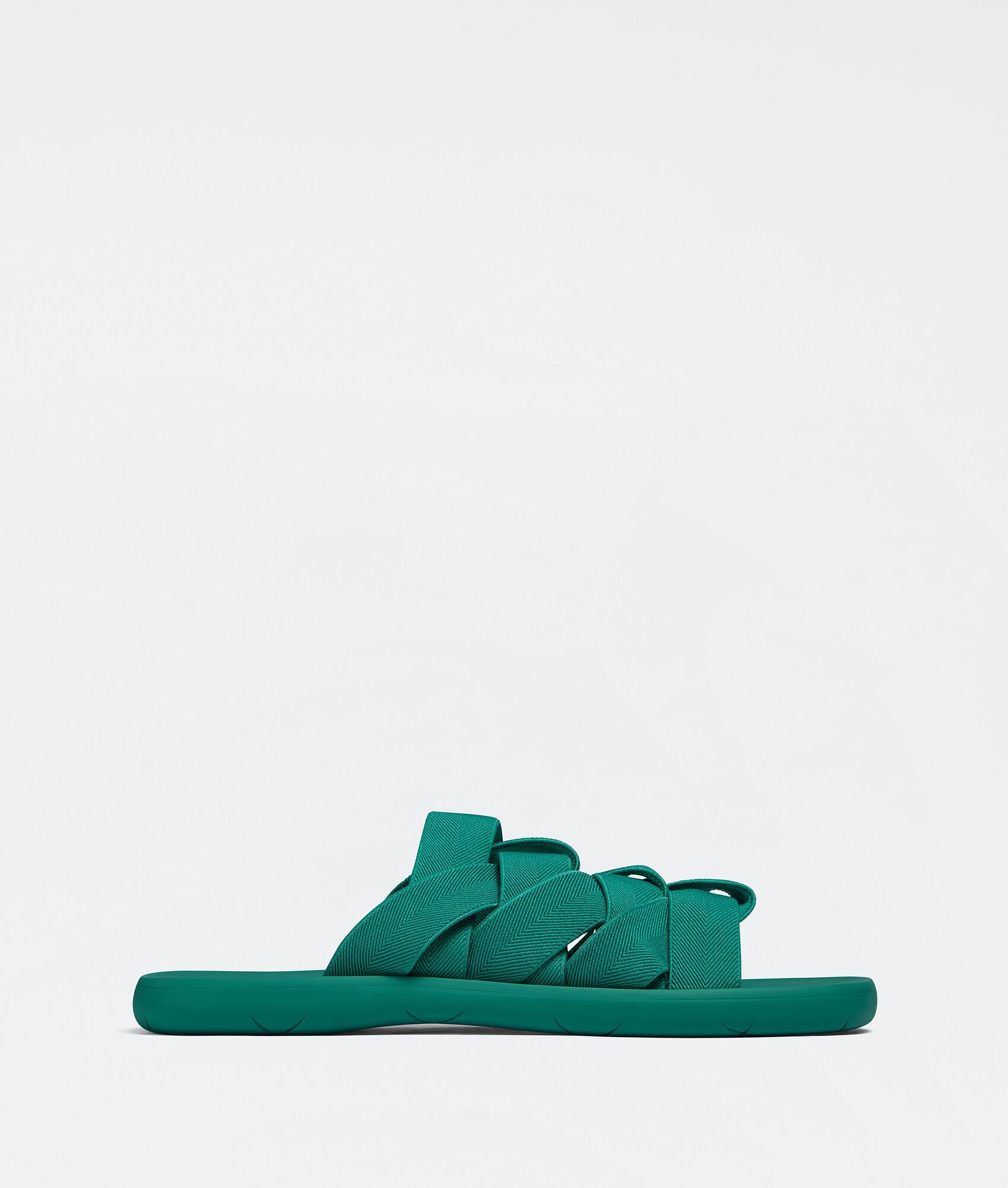 • Intrecciato elastic slides Material: 65% Metallic Lurex, 35% Rubber • Unlined • Color: Acid Turquoise • Rubber outsole Made in: Italy