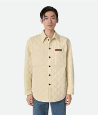 Quilted overshirt in lightweight matte technical cotton with Intrecciato suede patch. Product Details - Lightweight matte tech cotton quilted overshirt - Intrecciato suede front patch - Water-repellent - Button closure - Lined - Regular fit - Color: Sea Salt - Made in: Italy - Product code: 837036V5O609028 Size & Fit - Model is 189 cm|6'2" and is wearing a Bottega Veneta size 46