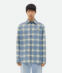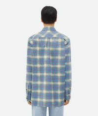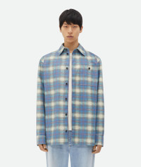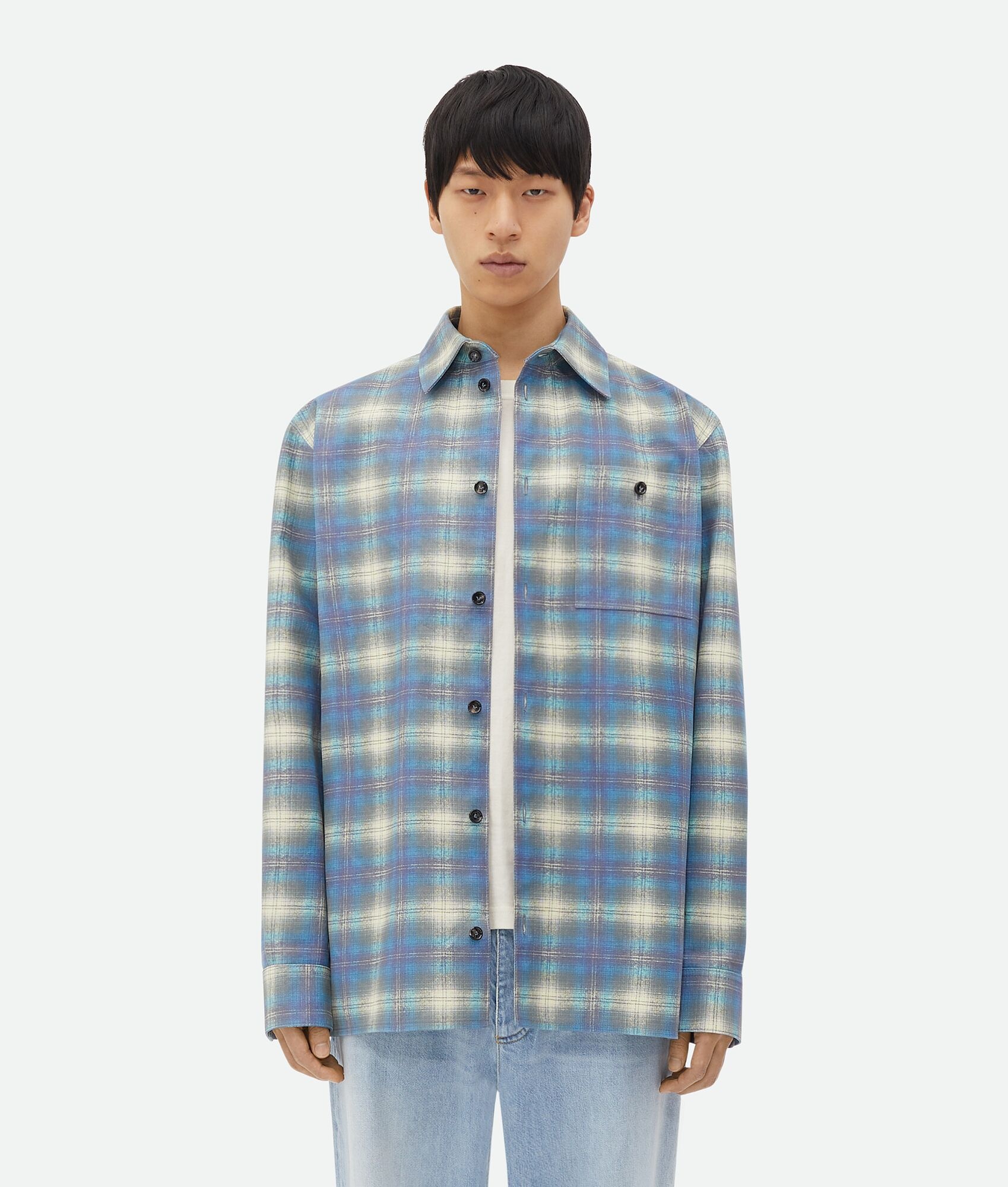 Printed leather shirt. Product Details - Printed leather shirt - Flannel check effect - Button closure - Unlined - Relaxed fit - Material: lambskin - Color: Multi/Light Blue - Made in: Italy - Product code: 736013V2QG04116 Size & Fit - Model is 186 cm | 6'1" and is wearing a Bottega Veneta size 46