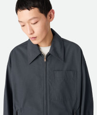 Blouson in cotton poplin with resin finish. Product Details - Resinated cotton poplin blouson - Zip closure - Unlined - Regular fit - Material: 100% Cotton - Color: Vulcano - Made in: Italy - Product code: 826331V5D201592 Size & Fit - Model is 188 cm|6'2" and is wearing a Bottega Veneta size 46