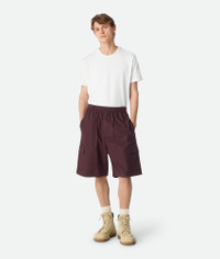 Cargo shorts in cotton poplin with resin finish. Product Details - Resinated cotton poplin cargo shorts - Cargo pockets - Elasticated waistband - Material: 100% Cotton - Color: Aubergine - Made in: Italy - Product code: 826462V5D206840 Size & Fit - Model is 187 cm | 6'2" and is wearing a Bottega Veneta size S