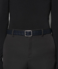 Belt in a blown-up intreccio weave • Reversible • Pin buckle DETAILS Composition: 100% Calfskin Color: Nero Hardware: Silver finish Width: 3 cm | 1.2" Made in Italy