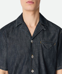 Shirt in lightweight rinsed indigo washed denim. Product Details - Rinsed lightweight indigo washed denim shirt - Triangle pocket detail - Button closure - Regular fit - Color: Indigo - Made in: Italy - Product code: 833877V5SN04245 Size & Fit - Model is 185 cm|6'1" and is wearing a Bottega Veneta size 46